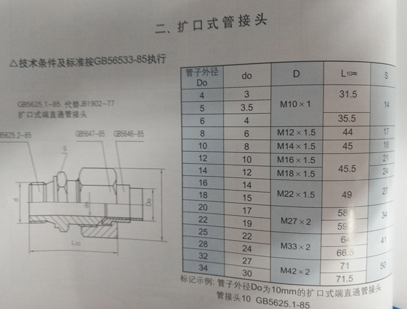 1、擴口式端直通管接頭(GB/T 5625-2008)