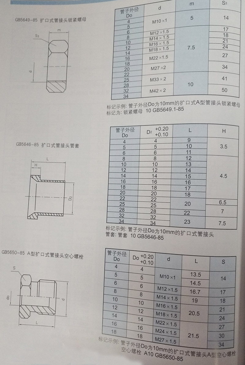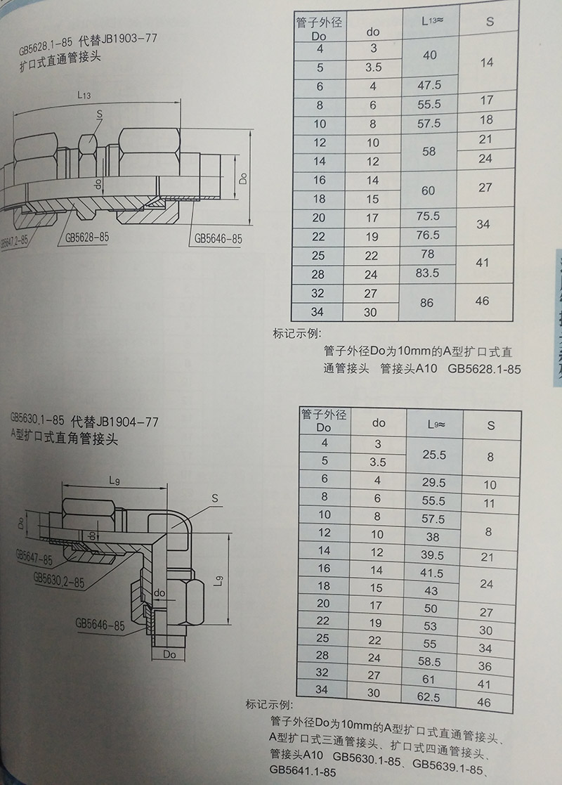 4、擴口式直通管接頭(GB/T 5628-2008)